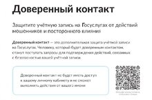 Отмечаем, что доверенным контактом могут стать только граждане Российской Федерации старше 18 лет, имеющие подтверждённую учётную запись на ЕПГУ и актуальный номер телефона в личном кабинете.