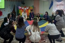 Сегодня прошел семинар-практикум для воспитателей по обучению детей родному языку на тему " Социоигровые технологии в контексте УМК "Говорим по-татарски" по обучен детей татарскому языку ". Пришли гости центрального района города Набережные Челны. Педагоги Муллахметова Э. Р. показала ОД по родному, татарскому языку на тему " Эни - ин якын кеше", Коробицына А. Р. поделилась опытом закрепления УМК с помощью загадок, педагог-психолог Есенбекова Н. Р. показала видеофрагмент с первой младшей группой "Урманга сэяхэт", старший воспитатель Давидова Э. Х. поделилась опытом " Роль анимационных сюжетов в развитии речи детей". Музыкальный руководитель Ямилова И. С. поиграла подвижную игру с элементами татарского танца "Парашют", воспитатель по обучению детей родному языку Муллахметова Э. Р. поделилась опытом работы подвижной игры " Сикереп эйт". Мы услышали очень много тёплых слов благодарности за организацию семинара-практикума, так как воспитатели по обучению детей родному языку получили много нового для своей работы.