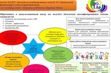 На базе МАДОУ "Детский сад комбинированного вида № 105 "Дюймовочка" функционирует консультационный центр "Co-working center"Здоровые родители-здоровые дети".Обратившись в консультационный центр, вы получите бесплатную квалифицированную помощь специалистов- педагогов, по воспитанию детей с ОВЗ- методиста- учителя-дефектолога- музыкального руководителя- инструктора ФК -