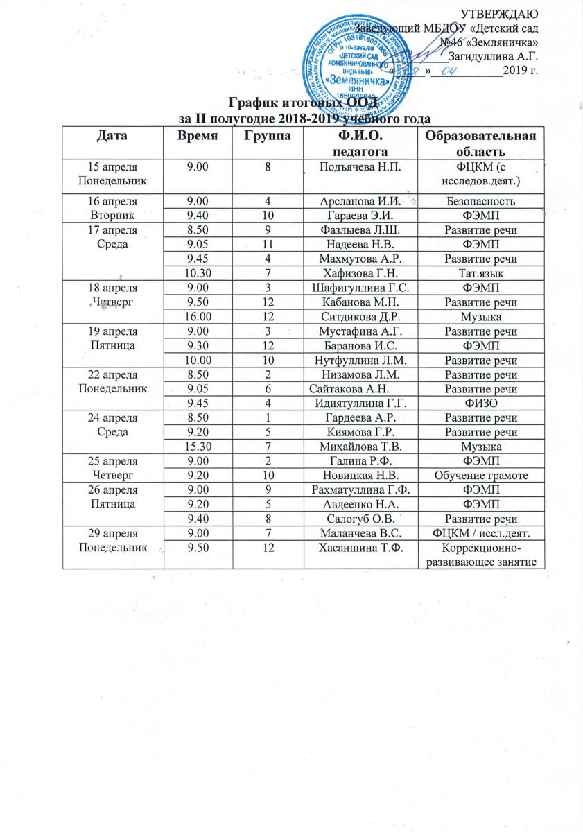 Ознакомиться с графиком можно здесь: График итоговых ООД