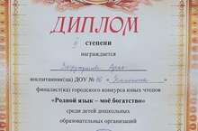 Наша воспитанница Загрутдинова Аделя заняла 3 почетное место в городском конкурсе юных чтецов "Родной язык - моё богатство" среди детей дошкольных образовательных организаций! Поздравляем!!