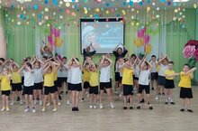 Большой флешмоб прошел в детском саду в преддверии Дня Космонавтики. Ребята старших и подготовительных групп исполнили игру-танец на ускорение «Я ракета».
