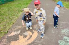 Сегодня в средней группе 7 детского сада 54 "Искорка" воспитанники совместно с педагогом Ириной Алексеевной сделали коллективную работу на асфальте "Лето - дивная пора".