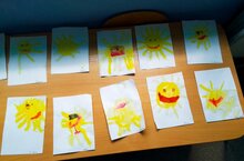 Сегодня ребята из группы 5, детского сада 54 "Искорка", рисовали солнышко из-за дождливой погоды. В ходе выполнения рисунков, дети учились закреплять в одном образе разные формы и линии: рисовали большой круг – солнышко, и несколько прямых линий – лучиков. В результате такой плодотворной работы, получились прекрасные солнышки, согревающие группу.