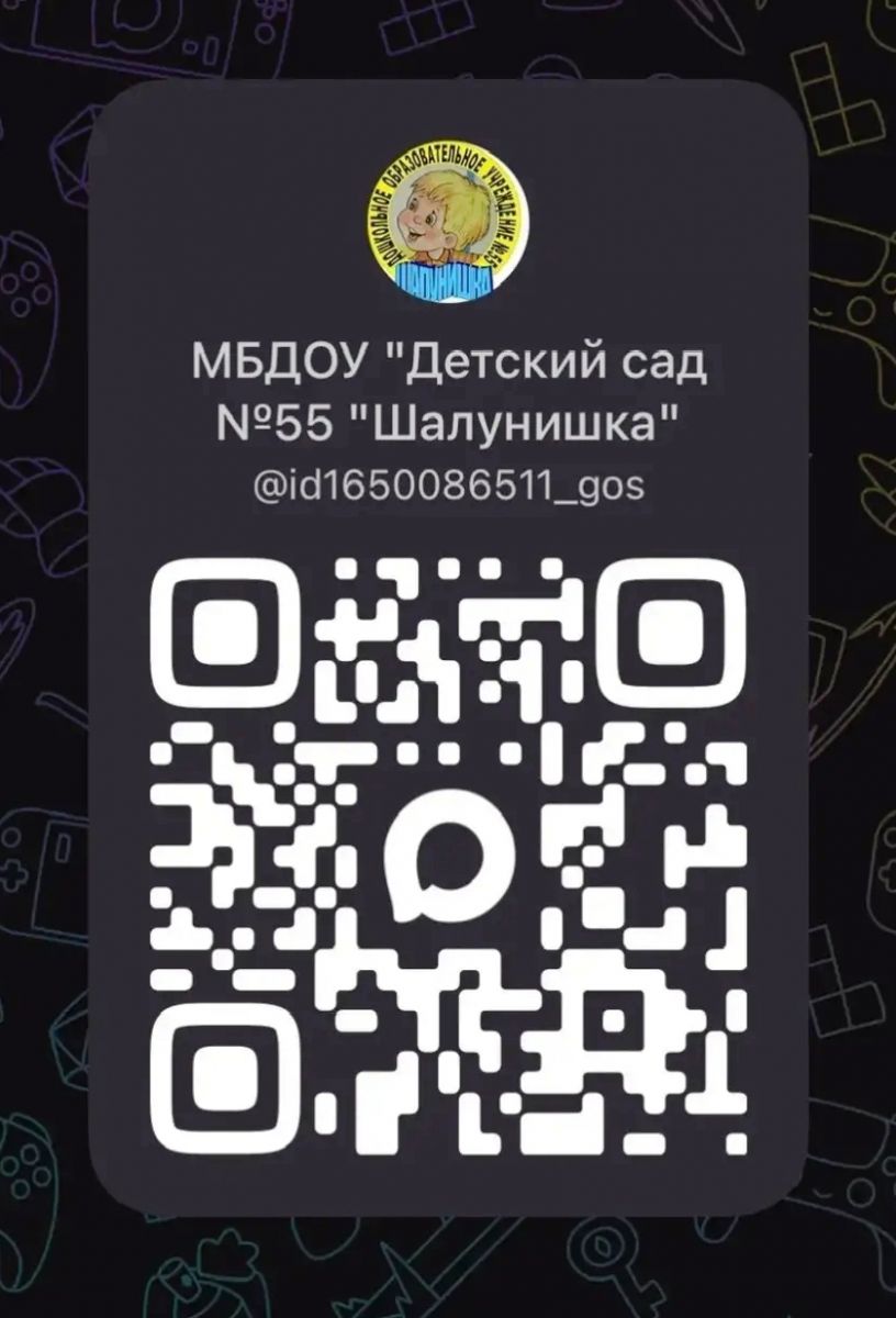 В связи с активным внедрением национального мессенджера МАХ была проведена работа по созданию официального канала МБДОУ "Детский сад №55 "Шалунишка". Приглашаем вас, уважаемые родители, присоединиться к нам по ссылке https://max.ru/id1650086511_gos либо по куар-коду