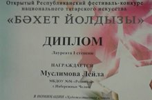 Поздравляем воспитанницу группы №7 Муслимову Лейлу с победой в республиканском фестивале-конкурсе "Бәхет йолдызы" в номинации "Художественное слово" (воспитатели по обучению татарскому языку Абдуллина Л.А., Мавлиева А.М.)!!!