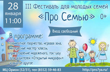 28 января 2018 года в 11.00 ч. в МАУ «Молодежный центр «Орион» семейные клубы города устроят для челнинцев фестиваль «Про семью», на котором каждый сможет найти направление по душе.