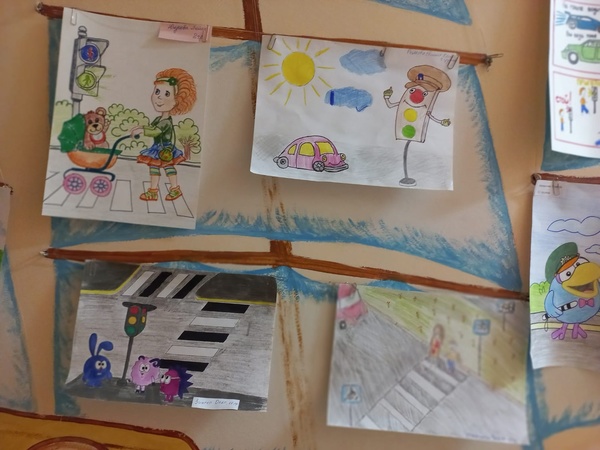На выставке были представлены яркие рисунки, на которых дети отразили свои знания о правилах дорожного движения. Юные художники и мастера изобразили пешеходные переходы, светофоры, дорожные знаки, безопасные маршруты в детский сад, а также ситуации правильного и неправильного поведения