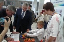 Воспитанник нашего сада Артем Скрипниченко представил вниманию высоких гостей свой исследовательский проект "Волшебные свойства магнита".
