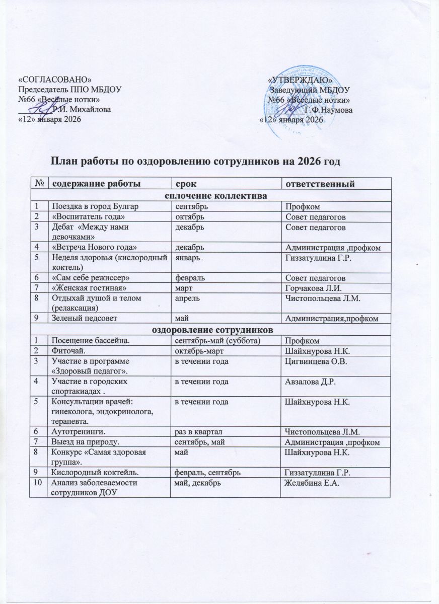 План работы по оздоровлению сотрудников на 2026 год