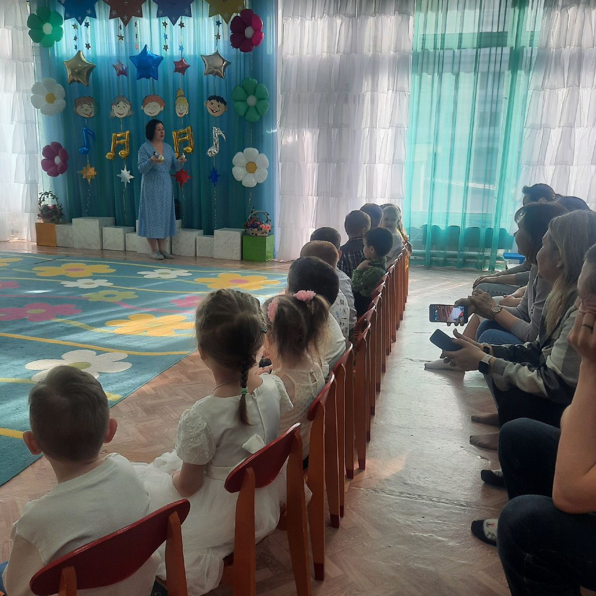 В конце апреля традиционно музыкальный руководитель Светлана Викторовна проводит отчётный концерт по итогом занятий по дополнительному образованию "Вокал" и "Музыкальный сундучок". Воспитанники групп 1,5,8 продемонстрировали родителям и педагогам свои успехи. В знак благодарности, родители вручили красивые букеты педагогу.