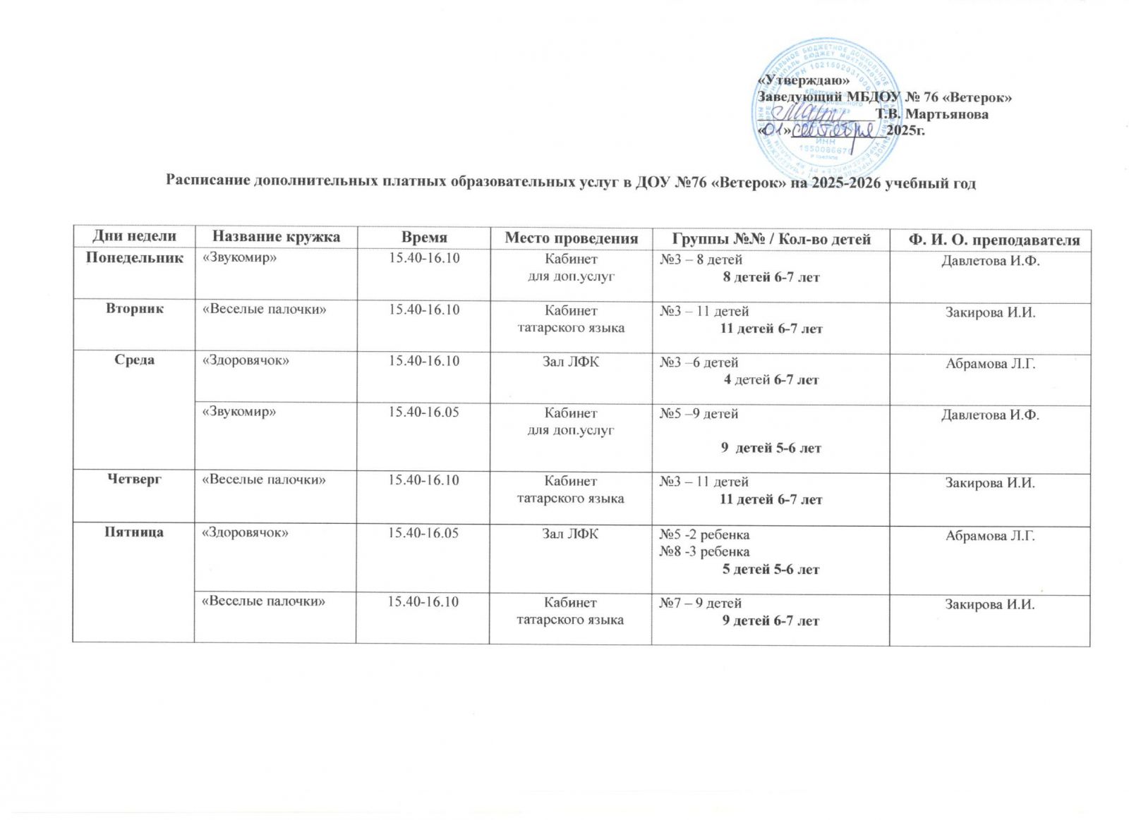 Руководитель: Мартьянова Тамара Владимировна