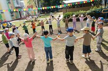 11 июля детки 12 группы поиграли в "Семью", на время "превратившись" в серьезных пап, прекрасных мам и озорных карапузов! Каждая "семья" и "дом" себе построила, и урожай с дачи собрала, и по городу на "машине" "прокатилась"! И все это весело и дружно, по-семейному. Ведь семья = это самое теплое и уютное местечко на Земле, и только с семьей мы по-настоящему счастливы!