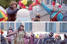 Праздник проходил на свежем воздухе. Любимые персонажи детей - Скоморох, Весна-Красна, Медведь, Баба-яга, Масленица устроили весёлые масленичные забавы: ребята играли в различные игры, участвовали в конкурсах, водили хороводы.