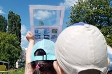 На улице ловили солнечные тени на листах А4.