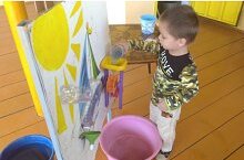 - Дети с восторгом рисовали красками на натянутой пленке – ярко, весело и тактильно!