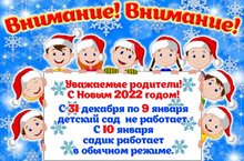 Хөрмәтле, әти-әниләр! Сезне якынлашып килүче Яңа 2022нче ел белән! 31нче декабрьдән 9нчы гыйнварга кадәр балалар бакчасында ял көннәре. 10нчы гыйнвар көненнән гадәти режимда эшлибез!