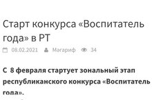 8нче февральдән "Ел тәрбиячесе 2021" конкурсының зона этабы старт алды. Элеге этапта хезмәттәшебез Муллагалиева Алия Альбертовна катнаша! Аңа унышлар телибез!