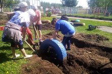 В рамках подготовки к летнему оздоровительному периоду на территории детского сада был разбит новый опытнический участок для посадки и выращивания овощных и полевых культур, были убраны резиновые шины.