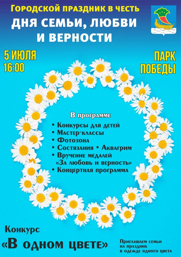 Администрация города приглашает Вас на мероприятия, посвященные Дню семьи, которые состоятся 1 июля на бульваре Энтузиастов.