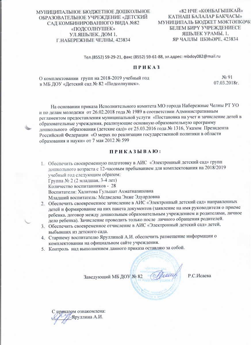 Короткое название: МБ ДОУ «Детский сад комбинированного вида №82 «Подсолнушек»