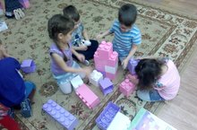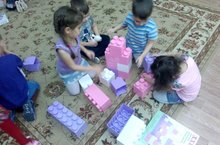 В детский сад поступили новые игрушки. Дети ненарадуются и придумывают различные конструкции.