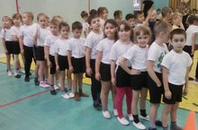 В рамках преемственности в спортивном зале школы №12 прошли соревнования среди учеников первого класса и воспитанниками подготовительной к школе группы. Каких только состязаний не подготовила инструктор по ФК Кудайкина Е.В. А в конце устрила им флешмоб.