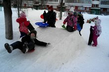 Завершился конкурс "Самый лучший участок!". На участках групп появились различные звери, пресмыкающиеся, домашние животные в виде зимних построек. На спортивной площадке "удобно разлеглась" гусеница (для подлазанья).