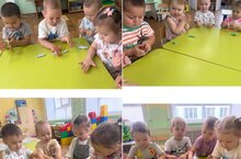 Сегодня дети 1 младшей группы занимались интересным занятием: лепкой из воздушного пластилина. Шедевров пока у нас нет, но полюбуйтесь какие красивые «колбаски» у них получились.