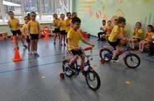 В нашем детском саду весело и познавательно прошло спортивно-музыкальное развлечение "Дорожная азбука". В мероприятии дети подготовительных групп показали отличные знания по безопасности дорожного движения. Инсценировка со сказочным героем Машей, которая чуть не попала в беду, способствует воспитанию у детей дисциплинированности на дорогах. Дети учили Машу, как правильно вести себя на дороге, что можно и что нельзя делать, познакомили её с дорожными знаками и светофорами. Затем дети играли и соревновались в весёлых эстафетах!