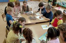 Дети средних, старших и подготовительных групп участвовали в городской акции "Символ Победы". Воспитанники с родителями изготовили броши из георгиевских лент для участников СВО.