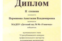 Перминова Анастасия Владимировна, воспитатель МАДОУ № 96 "Умничка" заняла 2 место в муниципальном этапе республиканского конкурса "Я говорю и работаю на татарском!".