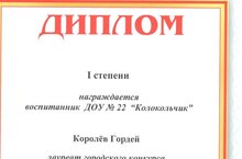 9.12.2021 состоялся финал городского конкурса "Звездочки 21 века" среди детей дошкольных образовательных организаций. Воспитанник группы № 1 Королев Гордей занял Диплом 1 степени в номинации "Художественное слово". Педагог Михайлова С.Ю.