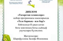 24 нче октябрь көнне “15 нче санлы Балалар иҗат йортының” милли мәдәният бүлегендә узган «Мин татарча сөйләшәм” дип аталган шәһәр программасының 1 этабы узды. Ул “Халык сүзе бер булыр!” дип аталды һәм татар халык авыз иҗаты әсәрләренә багышланган квиз уен формасында уздырылды. Бәйгедә мәктәбебезнең 4 нче сыйныф укучылары бик уңышлы катнашып 2нче дәрәҗәдәге диплом яуладылар. Чын күңелдән котлыйбыз, алдагы бәйгеләрдәдә уңышлар телибез!!!