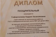 03.06.2022 года команда школы " Росточек" и руководитель Сафаргалеева К.Х. были отмечены дипломом за плодотворную экологическую деятельность.