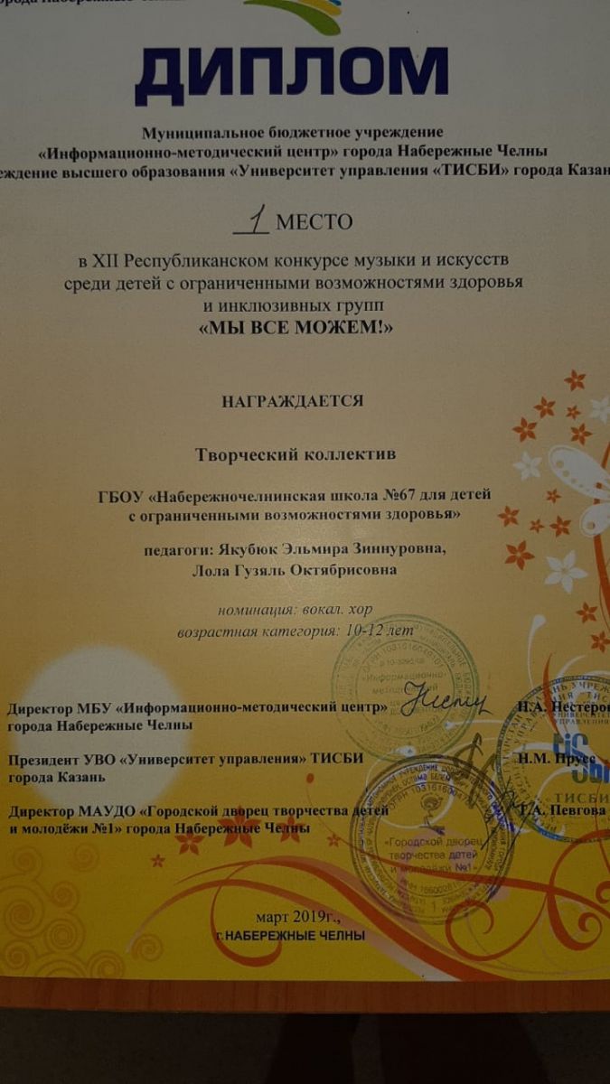 27.03.19 года учащиеся ГБОУ "Набережночелнинская школа № 67" приняли участие в Республиканском конкурсе для детей с ОВЗ "Мы все можем!"