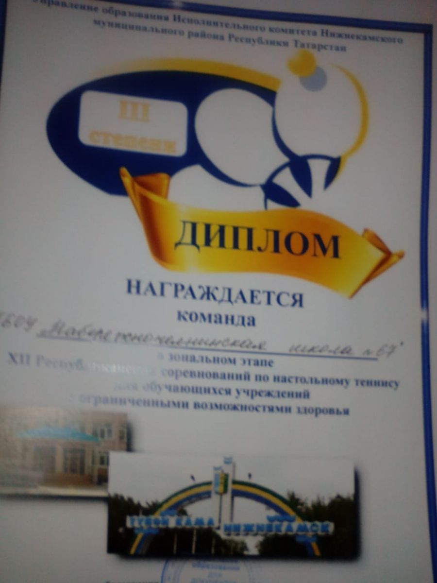 Команда ГБОУ "Набережночелнинская школа № 67" приняла участие в зональном этапе XII Республиканских соревнований по настольному теннису среди обучающихся школ с ОВЗ и заняла третье место в общекомандном зачёте и второе место в личном первенстве среди девушек.