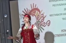 Обучающая 8а класса Бариева Лиана принимает участие в городском этапе республиканского конкурса "Без бергэ " и читает отрывок из былины "Про прекрасную Василиса Микулишну"