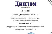 Поздравляем победителей в Муниципальном конкурсе по разработке буклетов и листовок "Засветись!" приуроченном Всемирному Дню памяти жертв ДТП