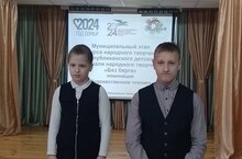 16.02.2024 г. Обучающиеся школы Магеррамова Арина 3 класс, Тищенко Ростислав 7 класс приняли участие в муниципальном этапе конкурса народного творчества Республиканского детского фестиваля народного творчества "Без бергэ", номинация "Художественное чтение".