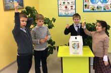 Ученики 1б класса помогают приготовить жестяные банки к работе. Молодцы.
