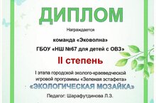 Команда "Эковолна" заняла 2 место в I этапе эколого-краеведческой игровой программы "Зеленая эстафета", "Экологическая мозаика".