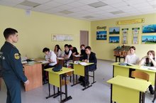 28.09.2023 года в школе прошли уроки безопасности с участием начальника караула пожарно-спасательной части 56 Хусниева Р. Р.