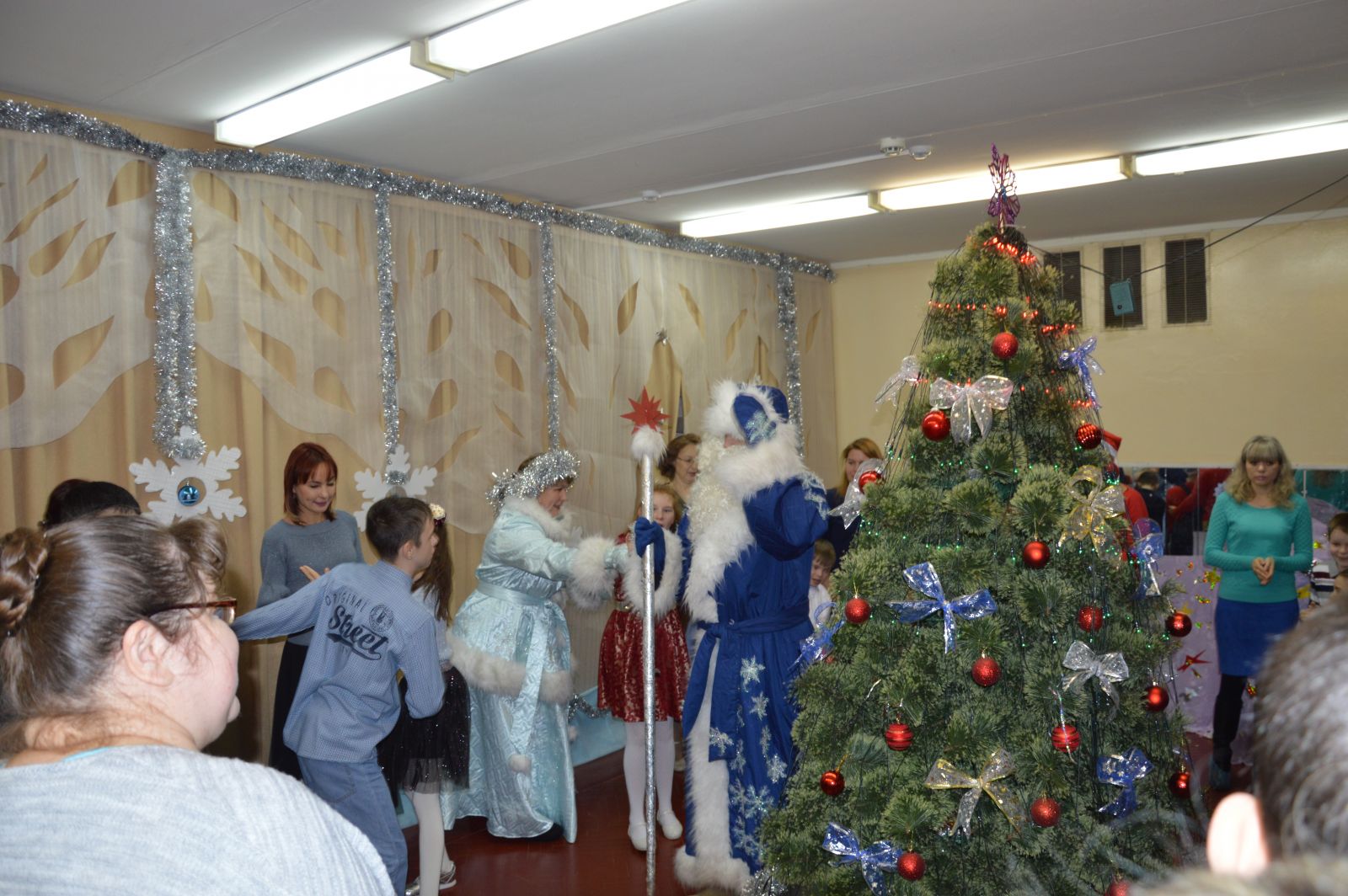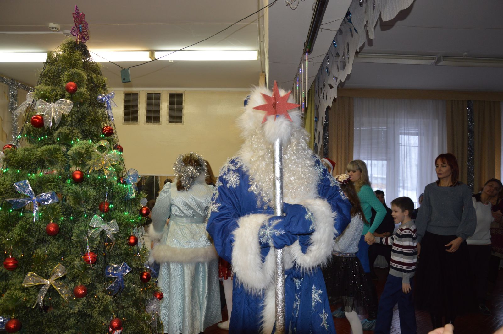 Опубликовано: 21.12.201821 декабря 2018 года в школе начались новогодние елки. Зал прекрасно украшен, елка наряжена - сказочный лес ждет своих гостей. Елки прошли в 1-4, 5-7 классов и для детей надомного обучения. Дед мороз и Снегурочка, Фантик, Мадам Лям по по и клоун Фаина поздравиги детей и гостей праздника красивым представлением.
