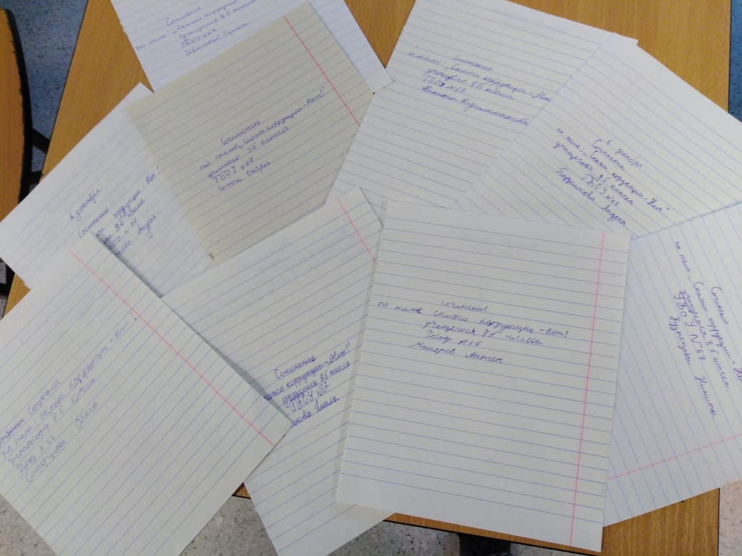 Опубликовано: 06.12.2019Среди обучающихся 8 - 9 классов прошел конкурс сочинений на разных языках «Скажи коррупции – НЕТ»