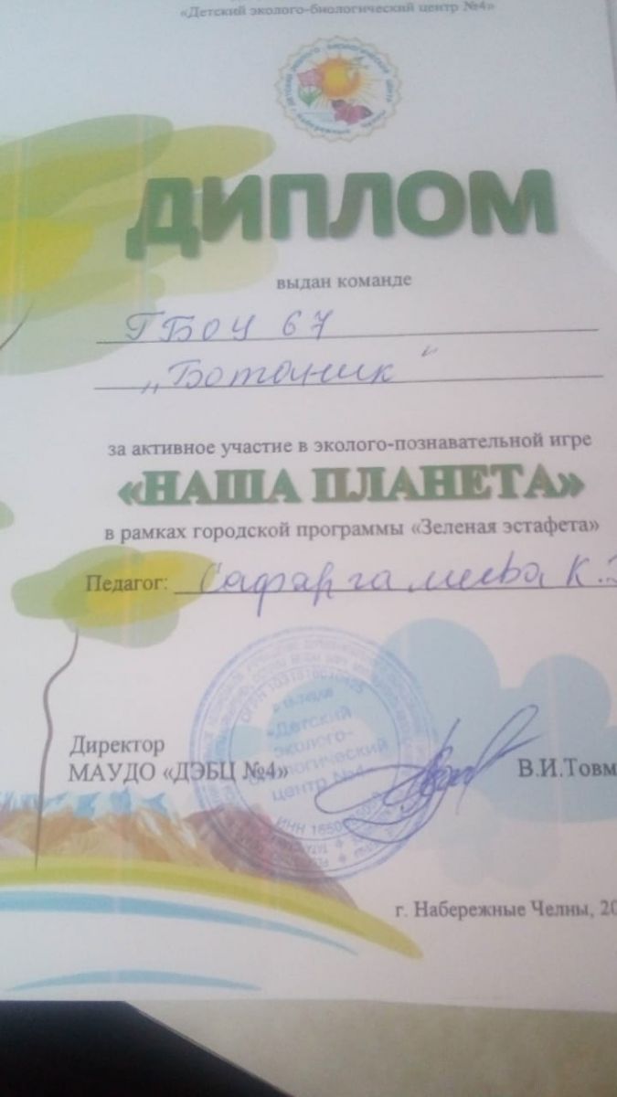 Опубликовано: 29.12.202029.12.2020 года обучающиеся ГБОУ "Набережночелнинская школа № 67" приняли участие в эколого- познавательной игре "Наша планета " в рамках городской программы "Зеленая эстафета".