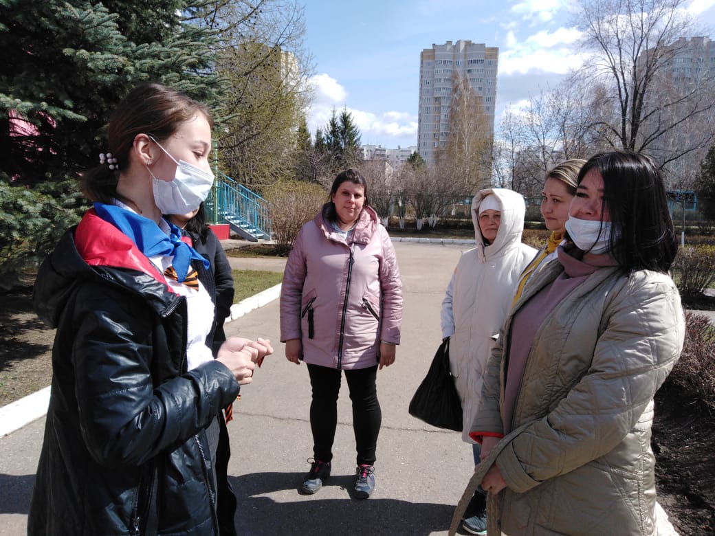 Опубликовано: 04.05.2021В ГБОУ "Набережночелнинская школа № 67" тимуровским отрядом " Непоседы была организована акция " Георгиевская ленточка ".