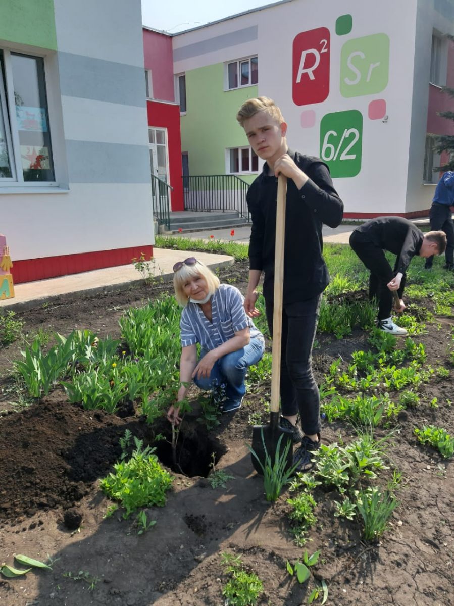 Сафаргалиева Кадрия Хасанзяновна и выпускники 2021 года заложили аллею каштанов.