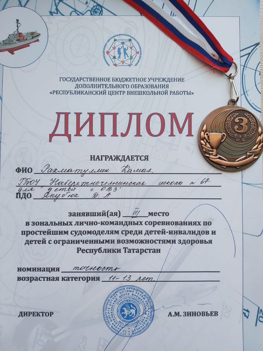 Опубликовано: 12.03.202212.03.2022 года обучающиеся ГБОУ "Набережночелнинская школа № 67" совместно с педагогом Якубюк Д.А. приняли участие в республиканских соревнованиях по судомоделях среди детей с ОВЗ республики Татарстан. Поздравляем победителей!
