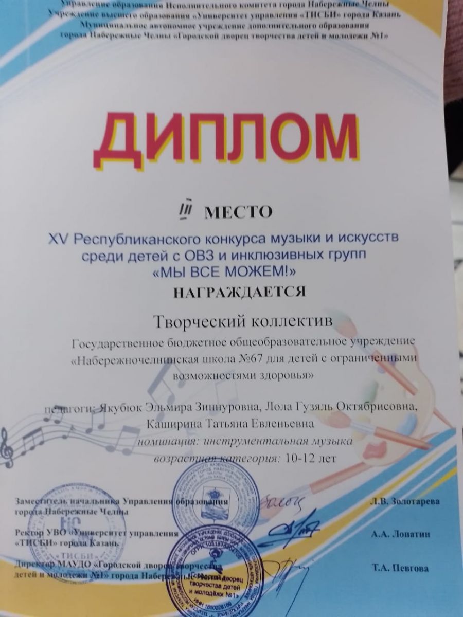 государственное бюджетное общеобразовательное учреждение «Набережночелнинская школа №67 для детей с ограниченными возможностями здоровья»